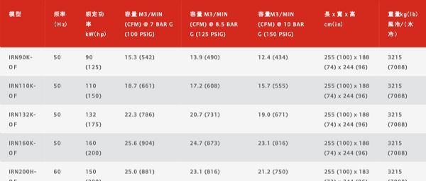 產品名稱:Nirvana系列90-160 kW可變速無油回轉式螺桿空壓機壓力:4.5-10.0bar功率:90-160kw排氣量:12.0-26.5m3/min品牌:英格索蘭