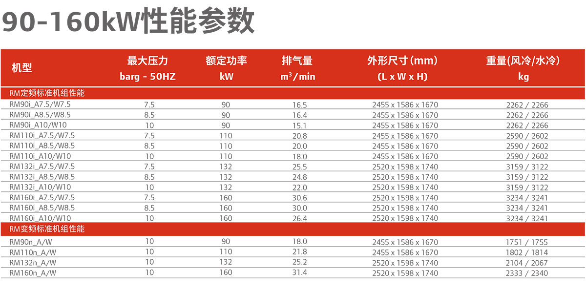 產品名稱:微油螺桿式空壓機RM系列90-160kW
